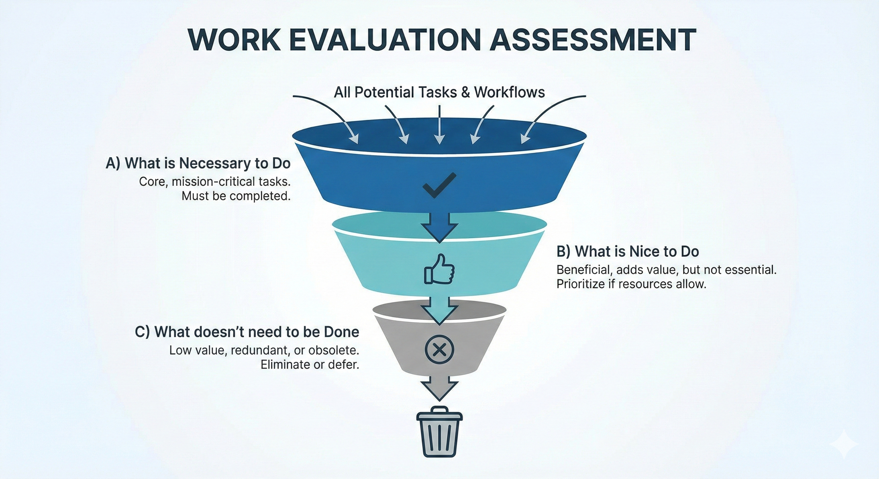 You’d be surprised at how much work comes up in the “what doesn’t need to be done” bucket.